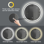 The mirror offers three lighting options controlled by a responsive touch button. Short-press the Light button to switch between White (6000K), Neutral (4000K), and Warm (3000K). Adjust the brightness to your ideal level for a perfect lighting experience.