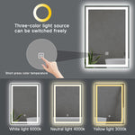 The mirror offers three lighting options controlled by a responsive touch button. Short-press the Light button to switch between White (6000K), Neutral (4000K), and Warm (3000K). Adjust the brightness to your ideal level for a perfect lighting experience.